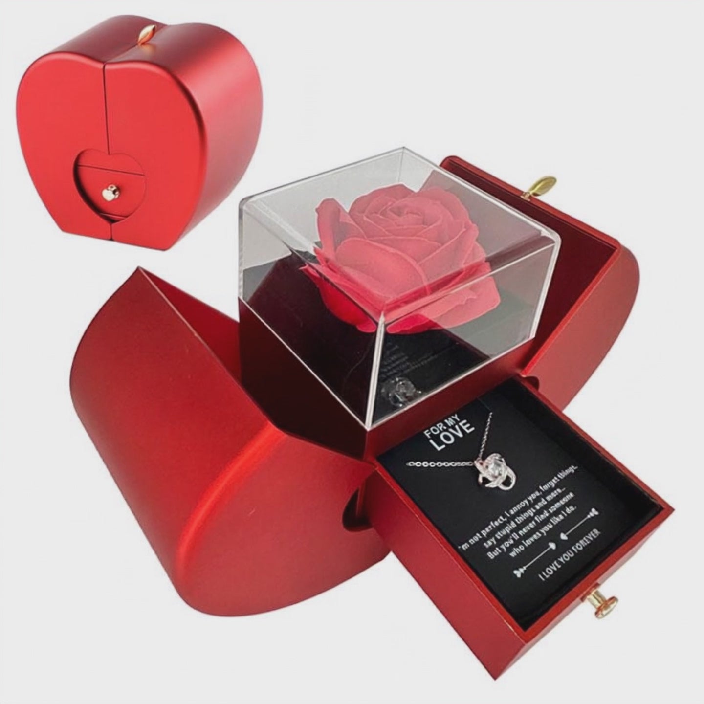 Why She’ll Love It • 🌹 Eternal Rose – A preserved rose that never wilts, symbolizing everlasting love • 💎 Hidden Necklace Drawer – A delicate necklace hidden inside for a magical reveal • ❤️ Elegant Heart Box – Premium heart-shaped design made to impress instantly • 🎁 Ready to Gift – No wrapping needed, perfect for surprise moments